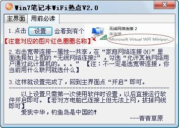 以上便是winwin7給大家介紹的Win7筆記本W(wǎng)IFI熱點(diǎn)軟件,如果出現(xiàn)問題可以參考軟件的【用前必讀】這一按鈕就來(lái)幫助你使用!