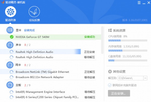 直接展示驅(qū)動(dòng)列表及安裝過(guò)程,整個(gè)過(guò)程更加快速,簡(jiǎn)單。