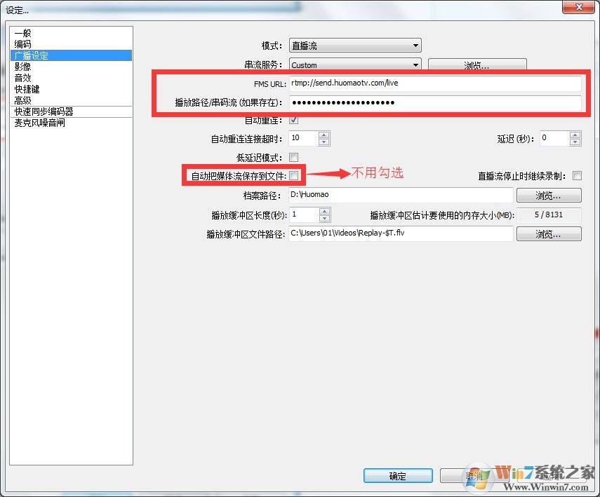 (2)直播模式:直播流(去直播網(wǎng)站把FMS URL 和串流碼復(fù)制到這來(lái))