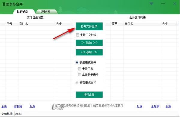 百思表格合并軟件是一款可以快速把EXCEL表格進行合并的工具,支持批量處理!支持按行、列合并!還特有兼容模式和快速模式提供給用戶使用!如果你需要合并表格,那么百思表格合并軟件是一款不可多得的好工具。