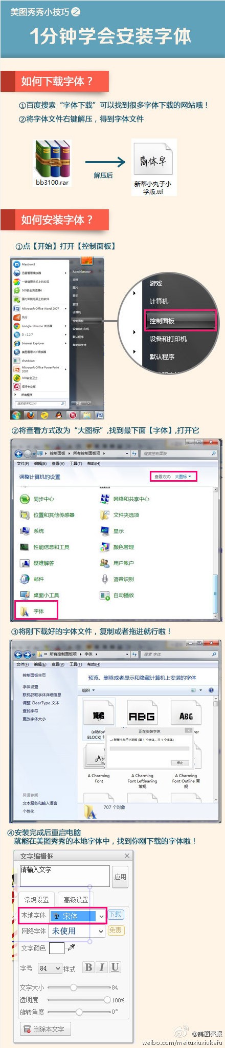 Q:怎么安裝字體/如何在美圖秀秀上導(dǎo)入字體呢?