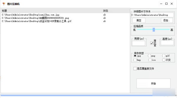 2、選擇要壓縮的比例 ,大小,保存類型,是否覆蓋原來的,然后開始就可以了
