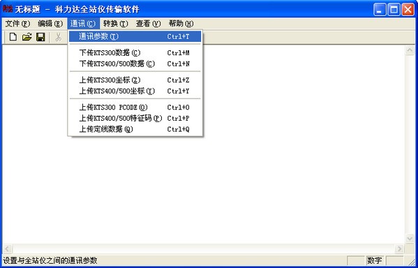科力達(dá)KTS系列全站儀的傳輸軟件可以實(shí)現(xiàn)下傳KTS300以及KTS400/500數(shù)據(jù),上傳KTS300/400/500坐標(biāo)和PCODE特征碼,以及轉(zhuǎn)換CASS坐標(biāo)、PCODE編碼(KTS300)等功能。