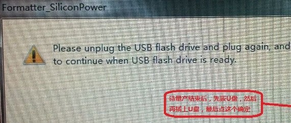 3、完成后別著急,先打開低格工具Formatter_LilionPower, 點擊"Format”對U盤進行低格,等上個幾秒鐘會彈出窗口,注意:這時千萬不要拔U盤,也千萬別點確定