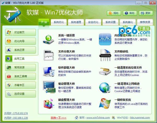 電腦卡,電腦開機慢,電腦運行速度慢,電腦垃圾多,電腦程序容易假死...怎么辦?今天winwin7下載為電腦遇到卡頓速度慢的用戶分享了這款win7優(yōu)化大師,能讓你的電腦重振雄風。