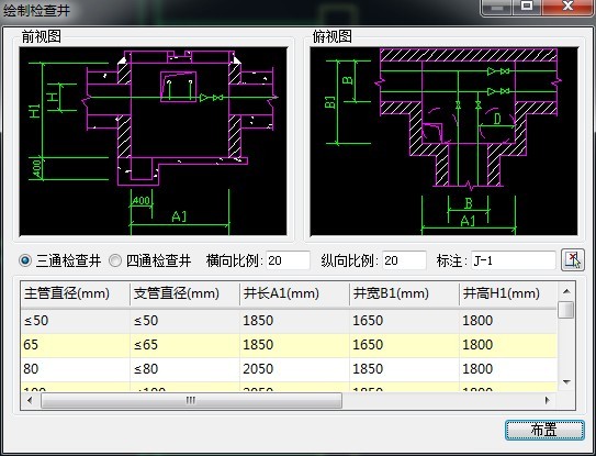 三通檢查井繪制到界面上效果圖