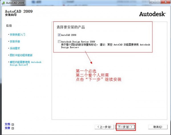 第六步:CAD2009 32/64中文版的產(chǎn)品信息界面