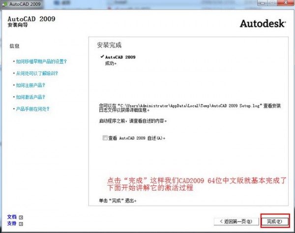 點擊“完成” 這樣CAD2009 32/64文中文版就安裝完成了