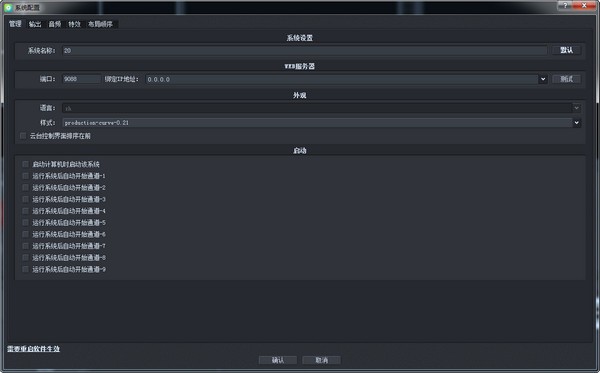 2.主菜單包括載入項目、系統(tǒng)配置、受控配置、全屏、受控模式、頻道控制條顯示等選項,如下圖所示:
