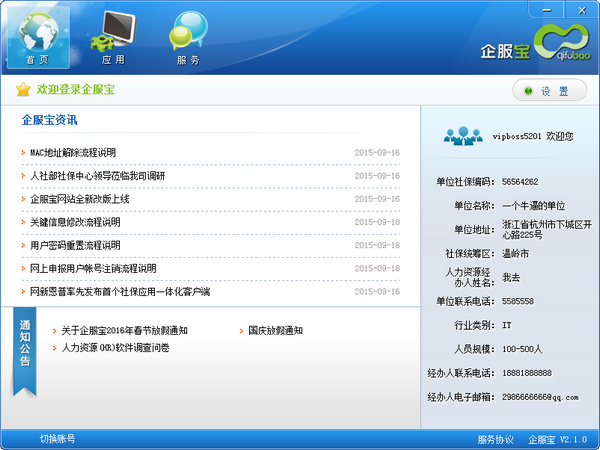 企服寶是一款非常專業(yè)的人力資源軟件,軟件內(nèi)置應用平臺、行業(yè)信息平臺、社保服務平臺、云計算平臺,可以解決工作人員的日常問題,提供一條高效的推廣渠道,展現(xiàn)方式更加簡約、清新。打開軟件我們可以設置單位名稱,地址,社保統(tǒng)籌區(qū),人力資源經(jīng)辦人,單位電話,行業(yè),公司規(guī)模等信息!需要這款企服寶行業(yè)軟件的用戶快通過下面地址來獲取吧!