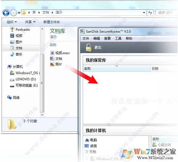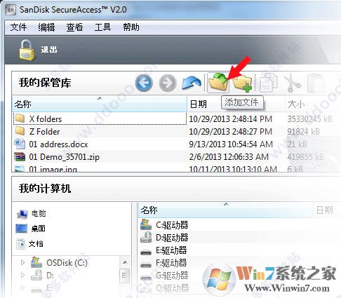 選擇您所想添加的文件和/或文件夾,然后拖放文件到閃迪SecureAccess 3.0軟件的主屏幕。