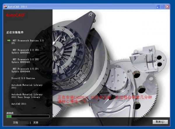 正在安裝CAD2011 32位中文版 此過(guò)程會(huì)持續(xù)幾分鐘--請(qǐng)耐心等待一下...... 如圖八。