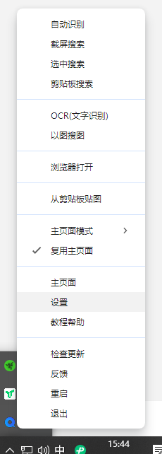 1、eSearch安裝完成后,不會打開任何界面,你需要在電腦屏幕右下角的托盤區(qū)域找到eSearch的圖標,單擊鼠標右鍵,選擇設(shè)置