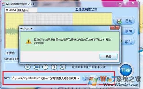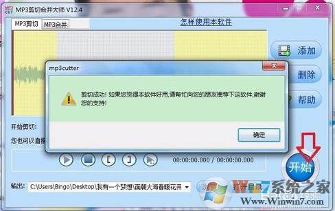 9、點(diǎn)擊圓形“開(kāi)始”按鈕,軟件進(jìn)行音樂(lè)剪切后自動(dòng)保存到預(yù)定路徑下,見(jiàn)下圖