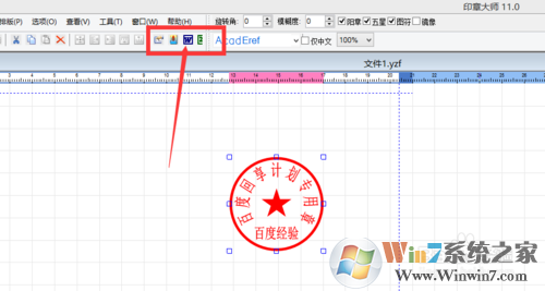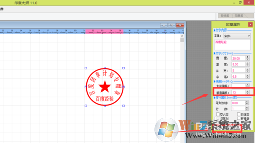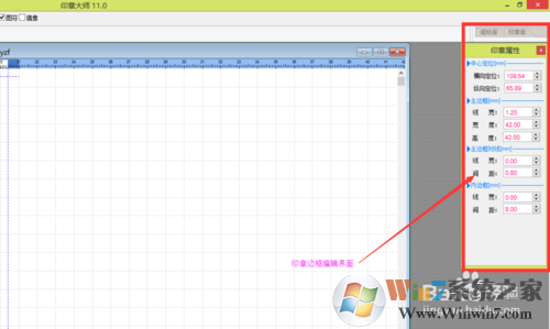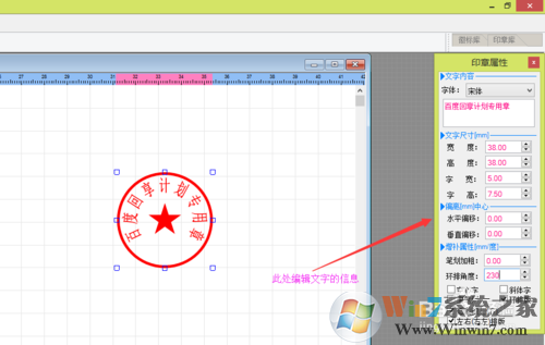 這里面都是以毫米為計量單位的,中心定位:在工作區(qū)的位置。主邊框:印章邊框。這些數(shù)據(jù)都可以改的。改好后,點擊上方的中心定位,可以回到編輯主界面。
