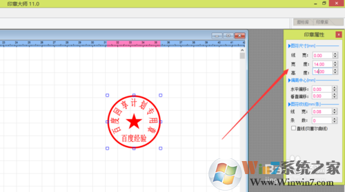 第四步,印章內(nèi)五角星的大小。雙擊圖符,把寬度、高度都改為14。