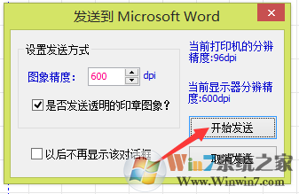 接下來我們的印章就制作成功了,那么我們怎么把它應(yīng)用到別的文件里呢?我們先把它發(fā)送到Word里,點擊Word圖標(biāo)—————開始發(fā)送。