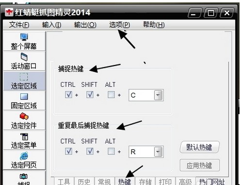 其次進入程序選項--捕捉熱鍵,設(shè)置好開始捕捉和重復(fù)捕捉的熱鍵,注意不能和其他應(yīng)用重復(fù)熱鍵。、