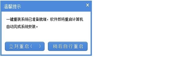 4.待系統(tǒng)下載完畢后,就可以進(jìn)行Win7系統(tǒng)一鍵安裝過(guò)程了。在一鍵安裝Win7系統(tǒng)之前,會(huì)出現(xiàn)一個(gè)提示框,提醒您軟件即將重啟計(jì)算機(jī)自動(dòng)完成系統(tǒng)安裝,您只需點(diǎn)擊立刻重啟即可。