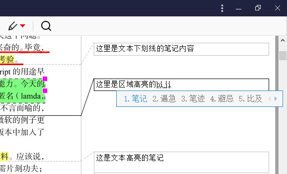 支持高亮,下劃線,區(qū)域高亮等標(biāo)注工具,以后增加更多...