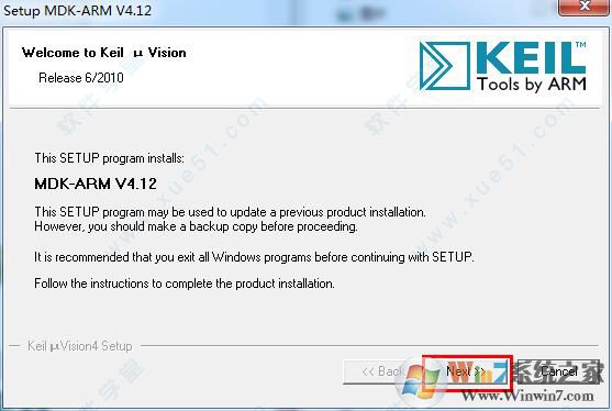 1、在本站下載好軟件壓縮包,將其解壓后雙擊運行里面的“MDK412.exe”,點擊“next”,開始安裝軟件?;旧鲜且宦種ext。。。。