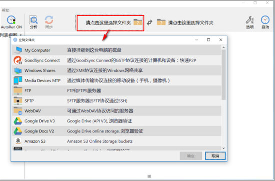 4、同樣的,我們點(diǎn)擊右側(cè)文件夾,然后選擇要另外一個(gè)要同步的方式與文件夾