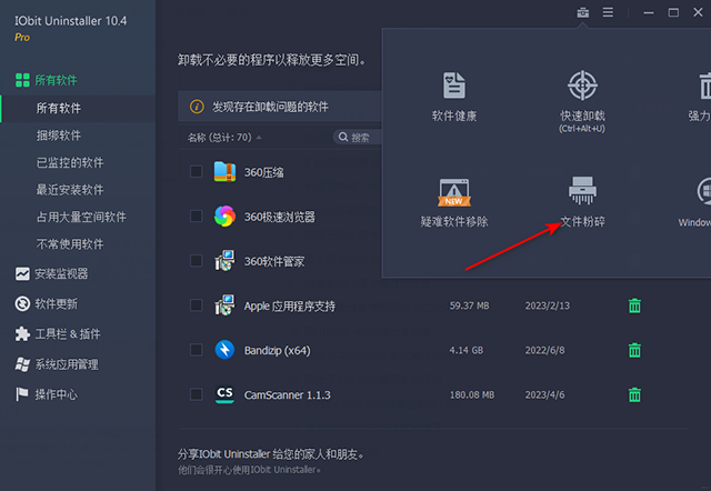 iobit uninstaller(卸載清除工具)粉碎文件的通用教程: