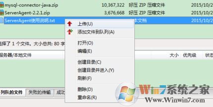 4、選擇待上傳的文件,右鍵再選擇上傳就可以將需要傳到服務(wù)器的文件進行上傳;