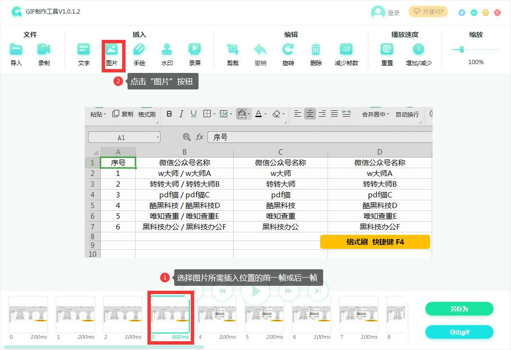 用法:在gif某一幀的前或后一幀,添加圖片(添加的圖片單獨(dú)記為一個(gè)幀)。