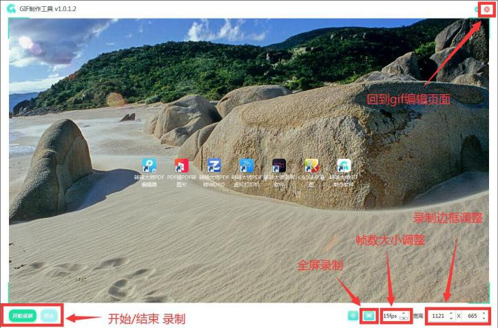 3、錄制完成后,點(diǎn)擊錄制框右上方的“×”按鈕,即可回到gif編輯頁(yè)面,對(duì)錄制完成的gif進(jìn)行編輯。