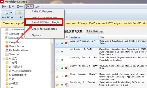 1、在Mendeley Desktop中安裝word插件,如圖:(重要提示:為了能夠成功生效,裝插件前需關(guān)閉Office系列軟件)