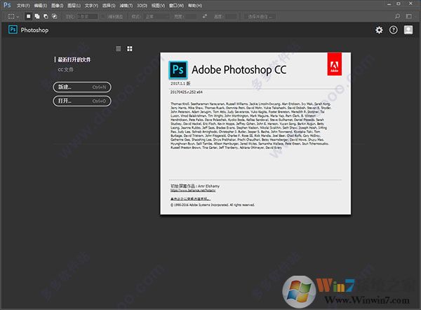 3、等待安裝完成,打開軟件,PhotoShop CC 2017已注冊,直接可以開始使用。