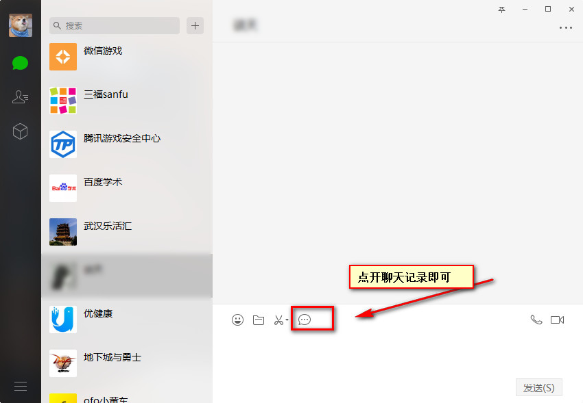 在聊天窗口中,點擊輸入窗口左下的“聊天記錄”按鈕
