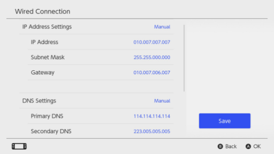 設(shè)定 →網(wǎng)絡(luò) → 設(shè)定互聯(lián)網(wǎng)連接 → 使用LAN連接線 → 定制 → 手動(dòng) →填入加速成功后給的信息 →MTU設(shè)定(自動(dòng)) →Proxy服務(wù)器(不使用)→測(cè)試互聯(lián)網(wǎng)連接