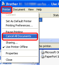 右擊你Brother設(shè)備的圖標(biāo) => 看正在打印 => 打印機(jī) => 刪除所有文檔