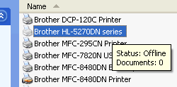 右擊你的Brother設(shè)備并選擇 使用聯(lián)機(jī)打印機(jī)(Use Printer Online)。