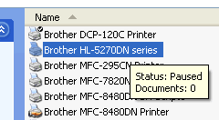 右擊您Brother設(shè)備的圖標(biāo) => 看正在打印(See what's printing) => 打印機(jī)(Printer) => 暫停打印(Pause Printing)(去除默認(rèn)勾選。)