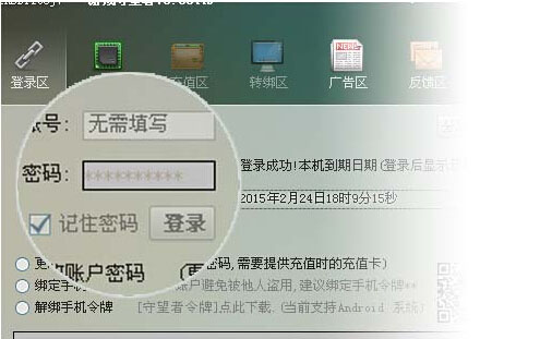 輸入密碼登錄輸入充值時設置的用戶密碼,點擊"登錄"按鈕登錄軟件.登錄成功,右側則及時顯示用戶信息.