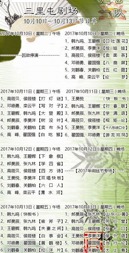 德云社2017鋼絲節(jié)相聲專場節(jié)目單