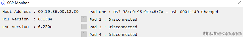 2、成功后運(yùn)行ScpToolkit Monitor (legacy),就會(huì)發(fā)現(xiàn)手柄已經(jīng)識(shí)別出來(lái)了,和舊款一樣最多支持4個(gè)。