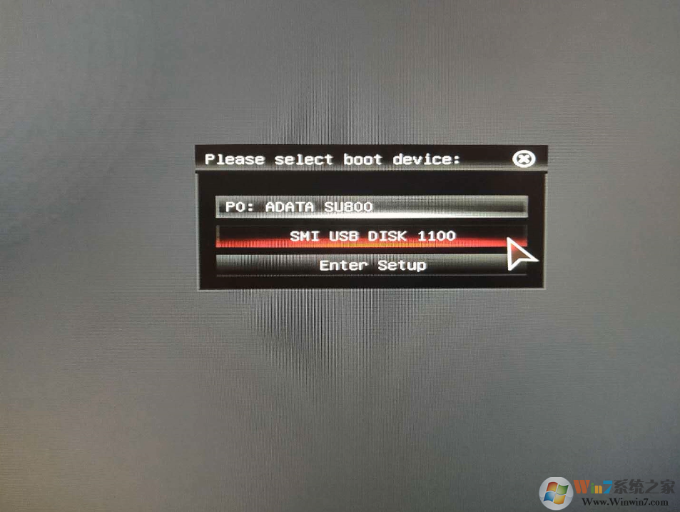 8、在進(jìn)入系統(tǒng)啟動菜單中選擇有USB字樣的選項并回車。