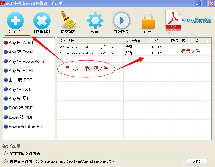 2 點擊左下角的的"添加文件",把需要轉(zhuǎn)換的文件添加進(jìn)來,一次可添加多個文件。同時選擇轉(zhuǎn)換后文件需要保存的位置。