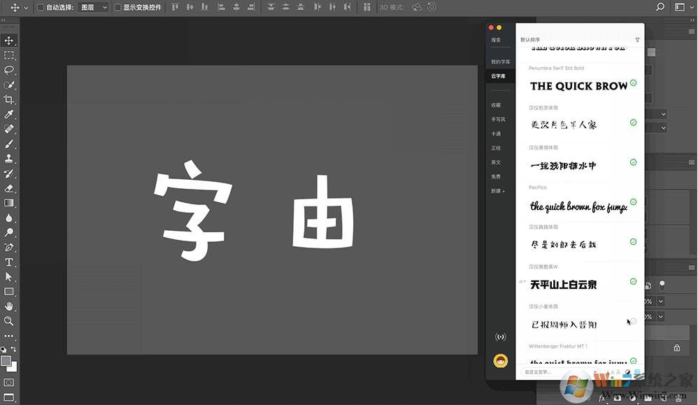 下載安裝后,就可以使用了。這款字體管理軟件,支持很多軟件,包括專業(yè)的PS、AI、Indesign、Coreldraw、Sketch、Word、PowerPoint等,這些軟件都可以直接使用字由里面的字體。