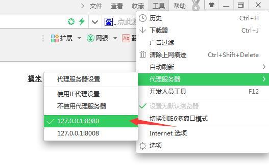 360瀏覽器:工具->代理服務(wù)器->代理服務(wù)器設(shè)置