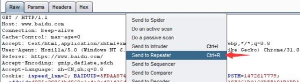 鼠標(biāo)對著Raw的內(nèi)容右擊,最后單擊Send To Repeater