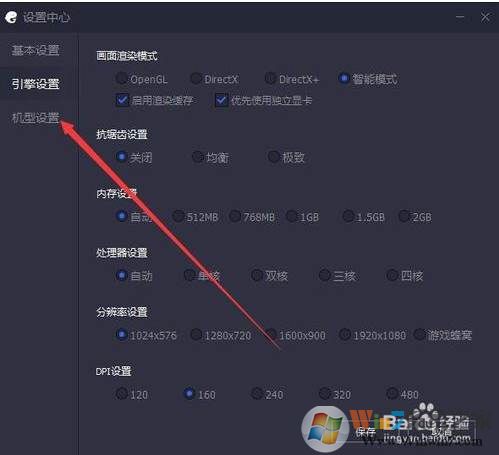 2、然后選擇引擎設置,點擊左側(cè)邊欄的“引擎設置”菜單項