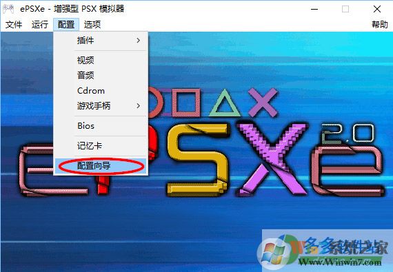 1、由于ePSXe模擬器采用插件運行模式,所以你要運行游戲必需要設(shè)置好插件,一般第一次運行軟件會自動提示配置向?qū)?,?dāng)然,你也可以進入軟件界面之后,點擊“配置”—“配置向?qū)?ldquo;來操作