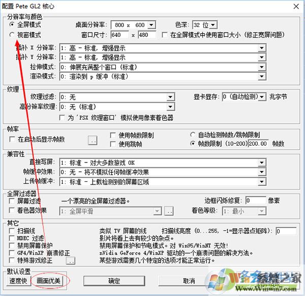 提示:建議先點一下”畫面優(yōu)美“,再最上方選擇窗口方式,這樣一來不會因為CPU太快而導(dǎo)致游戲失速