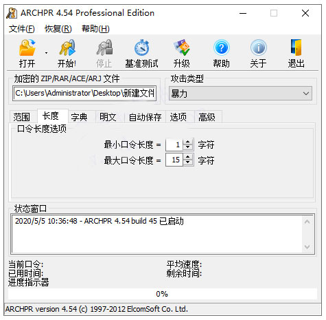 1、支持多種密碼破解方式,包括暴力、掩碼、字典、明文、擔(dān)保 winzip 恢復(fù)、口令來自密匙等類型。