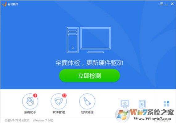 3、點(diǎn)擊中間的“立即檢測”即可查找對應(yīng)的驅(qū)動版本,然后就會自動安裝